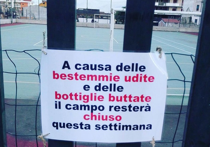 “A causa delle bestemmie udite e delle bottiglie buttate, il campo resterà chiuso questa settimana.”