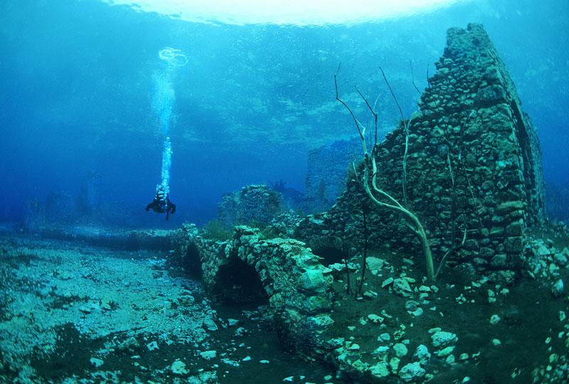 E’ il sito www.capestranodascoprire.it a raccontare, tra l’altro, di quella che è stata ribattezzata la “piccola Atlantide”d’Abruzzo. Nella foto che vedete (Foto di Denis Palbiani, da www.atlantidesub.com) ci si immerge nei fondali del lago che custodisce due mulini sommersi e che esistevano in superficie in epoca medioevale, mentre il colorificio è ancora visibile in superficie.
