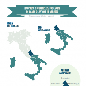 “Con 59,5 chilogrammi di carta e cartone raccolti per abitante – dato superiore alla media nazionale, ferma a 54,2 chili per abitante – l’Abruzzo si conferma la più performante tra le regioni del Sud Italia. Le provincie di Teramo e Chieti , con oltre 45mila tonnellate raccolte, raggiungono livelli di raccolta superiori ai 65 chili per abitante, allineando questi territori ai valori medi del centro-nord. L’area del pescarese, pur con un pro-capite di 57,3 chilogrammi per abitante, – superiore al dato medio nazionale – ha un dato in controtendenza rispetto alle altre province, con una raccolta che risulta inferiore di circa 2000 tonnellate rispetto al 2016. Recupera infine il territorio aquilano, che cresce del +5,3%. Queste due ultime province sono quelle nelle quali è richiesta una maggiore attenzione per migliorare il risultato complessivo della regione.