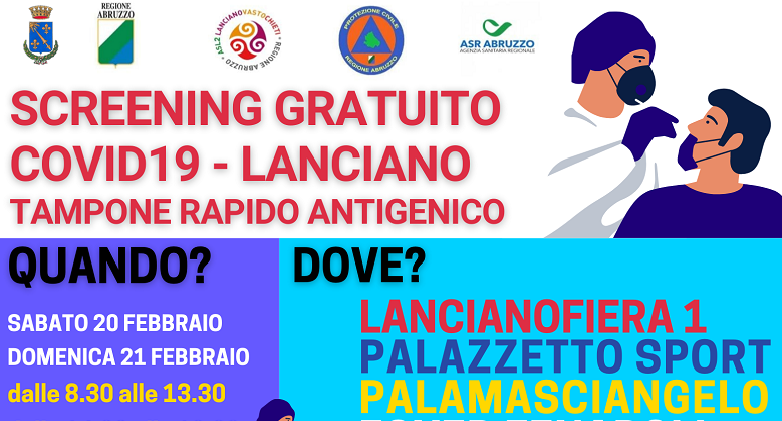 Dopo i due fine settimana di fine gennaio e inizio febbraio, con oltre 10.000 covid test rapidi effettuati, Lanciano replica con lo screening di massa di sabato 20 e domenica 21.