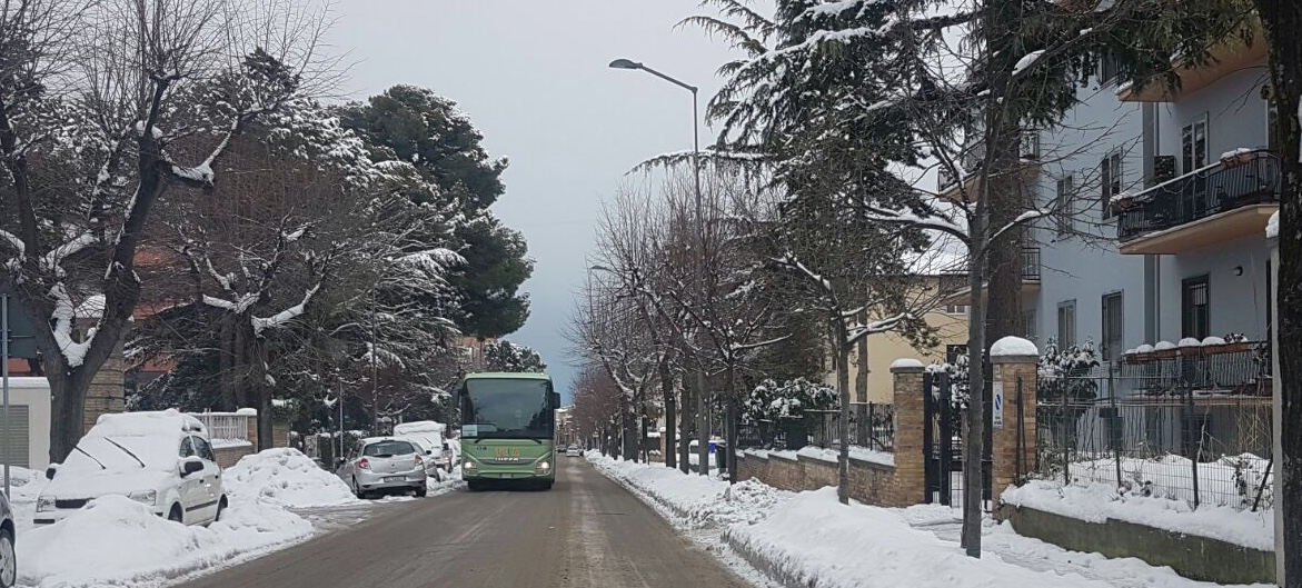 Pescara: ritardi per ghiaccio a Pietranico e Villa Celiera. Problemi, sempre legati alla viabilità, sulle linee 4 e 5 del servizio urbano a Pescara. In particolare: linea 4 limitata alla zona della Madonna dei Sette Dolori, linea 5 limitata all’intersezione con via Pandolfi.