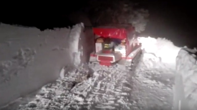 L’ondata di maltempo che ha interessato in questi giorni soprattutto la nostra regione, ha causato problemi e disagi non solo per la neve. In molte zone dell’Abruzzo diverse le famiglie rimaste senz’acqua e senza energia elettrica. Ora, dopo le abbondanti nevicate di ieri e l’altro ieri, i disagi maggiori sono causati dal ghiaccio sulle strade. In diversi comuni il sale è già finito e i marciapiedi sono impraticabili proprio a causa di vere e proprie lastre di ghiaccio, tanto da indurre diversi sindaci a emanare nuove ordinanze di sospensione dell’attività didattica anche per domani giovedì 12 gennaio (ELENCO DEI COMUNI, CLICCA QUI) . In particolare il versante orientale della regione, il Chietino e il Pescarese, è stato interessato dal maltempo. A Chieti tanta neve, problemi alla circolazione e specialmente nelle frazioni. E’ nevicato pure a Pescara dove, per le cadute sul ghiaccio, il Pronto Soccorso è in affanno e soprattutto nella zona dei Colli si sono riscontrati i problemi maggiori. Bufere di neve all’interno, in particolare nei centri dell’Alto Vastese dove non sono bastati gli spazzaneve, ma sono entrate in azione anche le idrovore per abbattere veri e propri muri di neve. Un gatto delle nevi dei Vigili del Fuoco proveniente da Agnone è arrivato ieri sera a Schiavi d’Abruzzo per consegnare i viveri e i medicinali ai residenti delle frazioni Valli e Casali, rimaste ancora isolate, in quanto la turbina della Provincia di Chieti si era dovuta arrendere di fronte a muri di neve alti quattro metri. Le operazioni di consegna sono terminate positivamente attorno alle ore 23 (foto in basso)