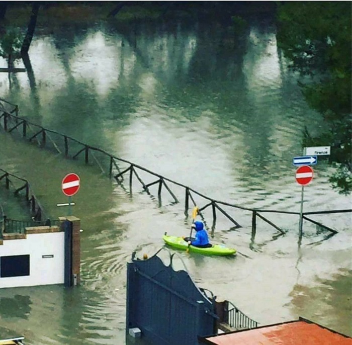 Sono soprattutto i Social a veicolare fotomontaggi simpatici e divertenti che immortalano scorci quanto mai insoliti. Dal tradizionale “Saluti da Pescara”, al surfista che cavalca le onde al casello autostradale di Pescara Nord Città Sant’Angelo, dalla nave da crociera che transita in zona stadio di Pescara a chi va in canoa lungo le vie allagate della pineta di Montesilvano. Insomma, ormai si è talmente abituati allo scenario che si prospetta quando, soprattutto sulle zone costiere si abbattono veri e proprio nubifragi, che oltre a sfogarsi per tombini otturati, fogne che non funzionano e di prendersela con gli amministratori, ci si prende un po’ in giro da soli, per sdrammatizzare, della serie “dopo il temporale c’è il sereno.” Di seguito alcune delle foto più simpatiche che abbiamo “scovato” sui Social. Aspettiamo le vostre, inviatecele tramite mail o Facebook. Le condizioni meteo dovrebbero migliorare dalla serata, nel frattempo, cerchiamo di riderci sopra …