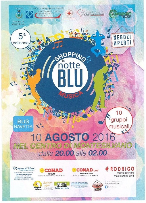 Tutto pronto, a Montesilvano, per la Notte Blu che si svolgerà domani, con animazione, spettacoli e negozi aperti dalle 20 alle 2 di notte.