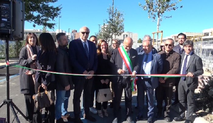 Davanti all’ingresso dell’ateneo di via Falcone e Borsellino la cerimonia di inaugurazione del cosiddetto “corridoio verde” che collega piazza Caduti di Nassiriya all’ingresso dell’università di via Falcone e Borsellino. Un milione e mezzo di finanziamenti per un progetto che dovrà essere ancora ampliato e che prevede oltre che parcheggi, in particolare verde.