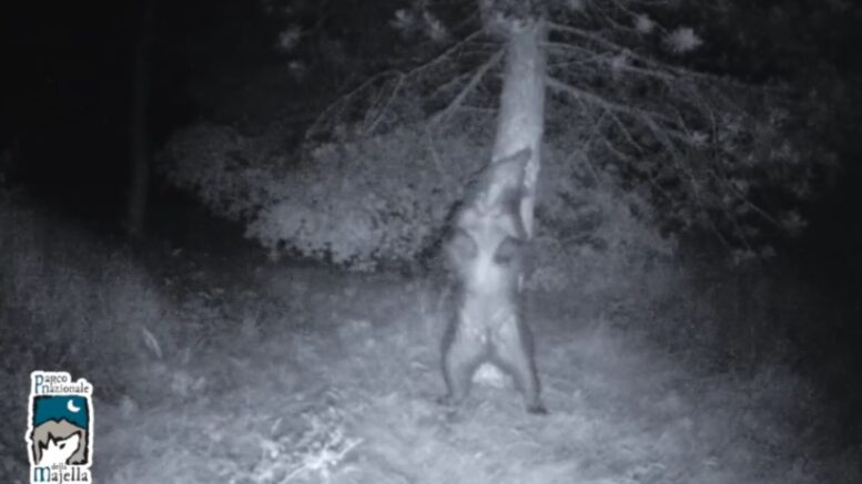 Di seguito le straordinarie immagini “catturate” sulla Majella, dal personale del Parco, di un orso che si gratta beatamente su un grosso albero.