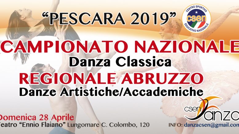 Sarà una domenica sulle punte quella del 28 aprile a Pescara: la città ospiterà il Campionato Nazionale Danza Classica CSEN ed il Campionato Regionale Danze Artistiche ed Accademiche CSEN.