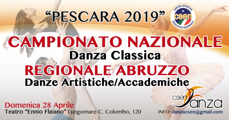 Sarà una domenica sulle punte quella del 28 aprile a Pescara: la città ospiterà il Campionato Nazionale Danza Classica CSEN ed il Campionato Regionale Danze Artistiche ed Accademiche CSEN.