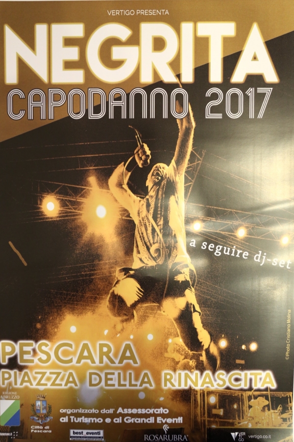 Pescara è prima fra le dieci città più consigliate d’Italia da Trivago per il Capodanno in piazza. Cresce l’attesa per i Negrita che sui profili social invitano il pubblico a non mancare al concerto pescarese, che con le Luci d’Artista, che illuminano in modo unico la città e il festival nazionale di videomapping Pescara Mapping 2016, che ogni sera fa puntare migliaia di occhi sulla facciata di palazzo Arlecchino, ha letteralmente acceso come mai prima d’ora le festività natalizie della città.