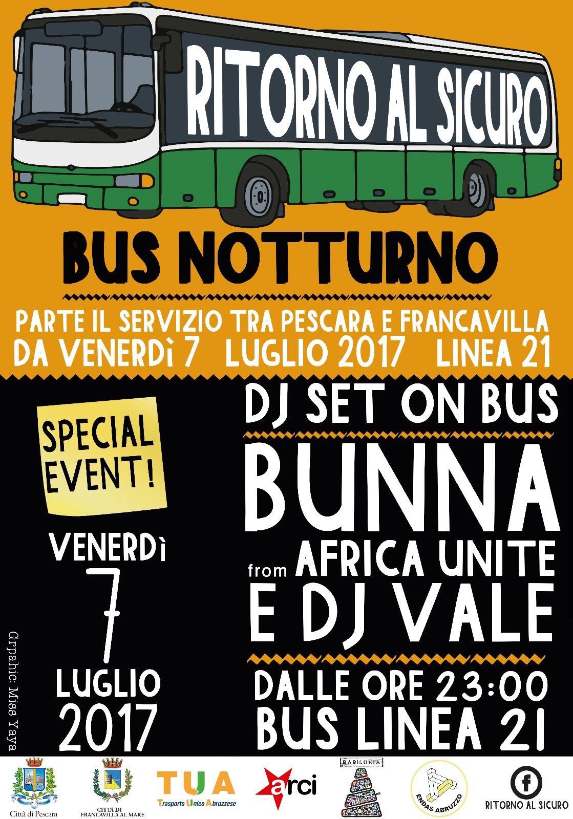 Singolare iniziativa intrapresa grazie a un accordo tra i comuni di Pescara e Francavilla: da venerdì prossimo fino al 31 dicembre, sui bus navetta TUA che collegheranno le due città nelle ore notturne, animazione e musica.