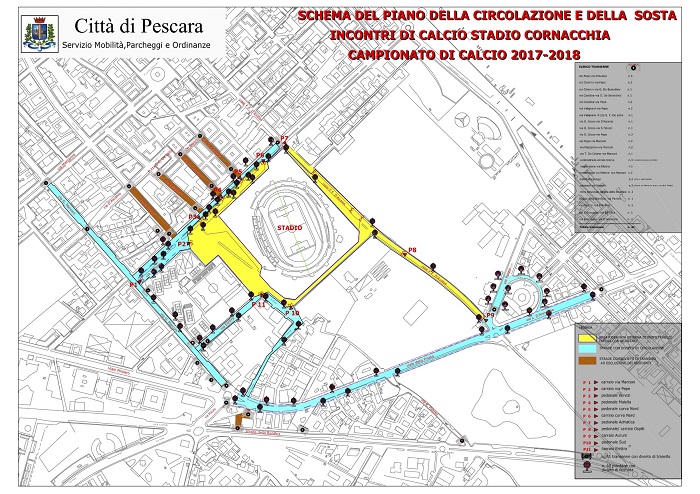 Il Pescara torna in campo, ecco la nuova disciplina del traffico. Blasioli: “Domani massima attenzione per chi parcheggia all’antistadio, le auto vanno rimosse entro le 13”.