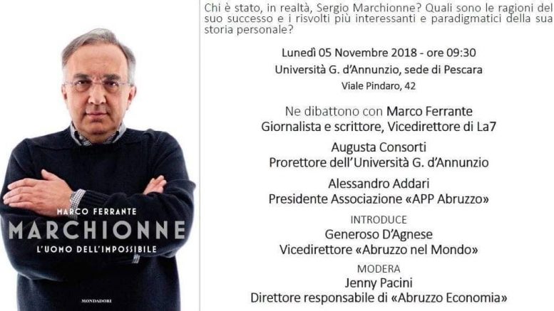 E’ stato presentato a Pescara, nella facoltà di Economia e Commercio dell’Università d’Annunzio, il saggio di Marco Ferrante “Marchionne – L’uomo dell’impossibile”, edito da Mondadori.
