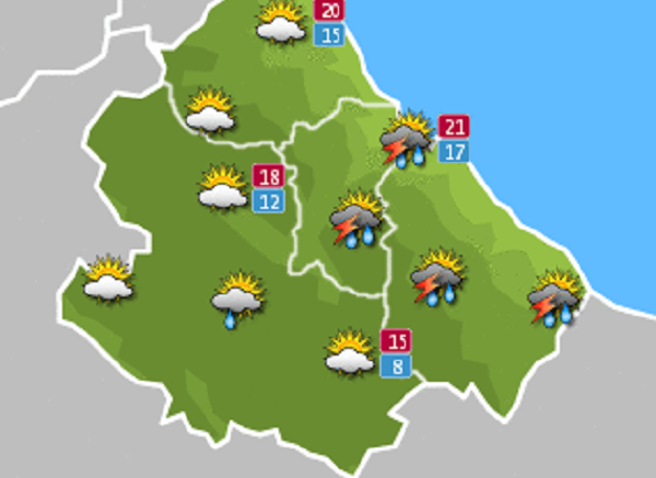Nel Pescarese: temporali e schiarite, temperature tra i 17 e i 21 gradi.