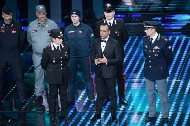 Carlo Conti, parlando delle recenti emergenze che hanno colpito il centro Italia anche con il vice questore della Polizia di Stato Giuseppe Briganti, direttore operativo dell’11^ reparto volo di Pescara, unità molto impegnata nei soccorsi alle popolazioni isolate. Il festival ha ricordato anche l’agente della Polizia di Stato che, con la moglie, ha perso la vita nella tragedia di Rigopiano. Il piccolo Samuel, figlio della coppia, è stato salvato dai soccorritori dopo aver trascorso due giorni sotto le macerie.