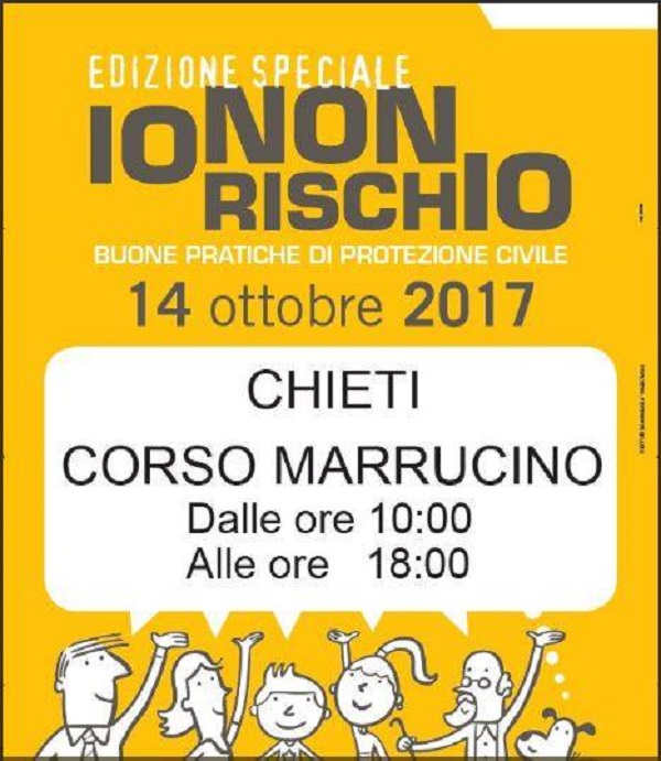 Alcuni punti informativi sul rischio sismico e su cosa ciascuno di noi può fare per ridurne gli effetti saranno allestiti sabato 14 ottobre a Chieti in occasione in occasione della campagna nazionale per le buone pratiche di protezione civile denominata “Io non rischio”. Dalle 10 alle 18 lungo a corso Marrucino saranno attivi i gazebo nei quali i cittadini possono ricevere informazioni sui rischi che si corrono in caso di terremoto, maremoto e alluvione. L’iniziativa è curata dai volontari delle associazioni Cives- Nucleo Provinciale di Chieti, Croce Rossa Italiana, Radio Club Protezione Civile Città di Chieti, Nucleo Operativo Teate Chieti, Gruppo comunale di Francavilla al Mare, Gruppo comunale di Furci, Circolo San Vitale di San Salvo, Valtrigno di San Salvo. ‘Io non rischio’, campagna nata nel 2011, è promossa dal Dipartimento della Protezione Civile con Anpas-Associazione Nazionale Pubbliche Assistenze, Ingv-Istituto Nazionale di Geofisica e Vulcanologia e Reluis-Rete dei Laboratori Universitari di Ingegneria Sismica.