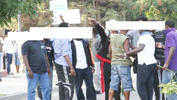 “Cibo scotto”, protesta sulla Statale Adriatica, ieri mattina, di alcuni profughi ospiti in un camping di Torino di Sangro.