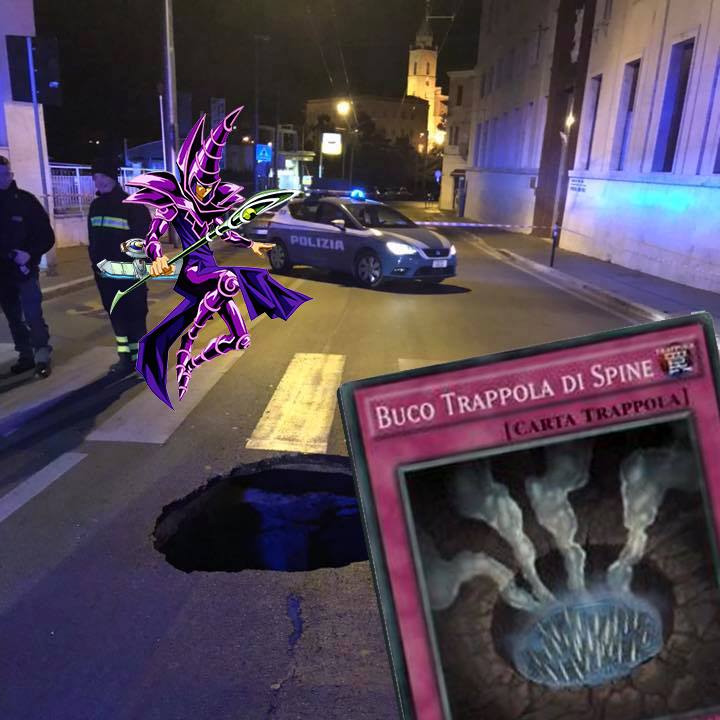 Certo poteva andare peggio, ma così, per fortuna non è stato. Mentre il Comune ripara il grande buco largo 4 metri e profondo 5, ci si interroga sulla situazione in città. Non è la prima volta, infatti, che vere e proprie voragini si aprono nell’asfalto. Fortunatamente solo tanta paura per l’automobilista che ci è quasi finito dentro, ma nessuna conseguenza per le persone. Per questo, i Teatini, sfoderano l’ironia e nel buco lungo la strada interessata ci mettono di tutto e di più, grazie a fotomontaggi che cercano di far sorridere lì dove da ridere c’è poco. Di seguito alcune foto.