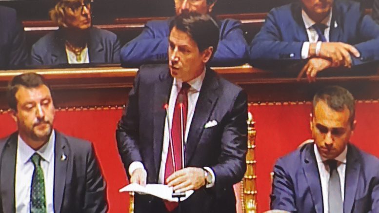 Il premier Giuseppe Conte durante il suo intervento in Senato, ha definito “oggettivamente grave”, per le conseguenze “economiche e politiche” sul Paese, la decisione di Matteo Salvini, seduto alla sua destra tra i banchi del governo, di staccare la spina al governo depositando una mozione di sfiducia. Conte ha detto che la crisi non si può consumare con “dichiarazioni affidate ai social o nelle piazze” senza un adeguato contraddittorio in Parlamento. La decisione della Lega “interrompe prematuramente per ragioni elettorali un’operazione di governo che aveva ottenuto molti risultati e molti ne stava realizzando” ed è per questo “oggettivamente grave”, aggiunge Conte. Inoltre, la decisione di Salvini viola “il solenne impegno che il leader della Lega aveva assunto con il contratto di governo” e comporta “gravi rischi per il Paese”. Questa affermazione è stata accolta con un grosso applauso.