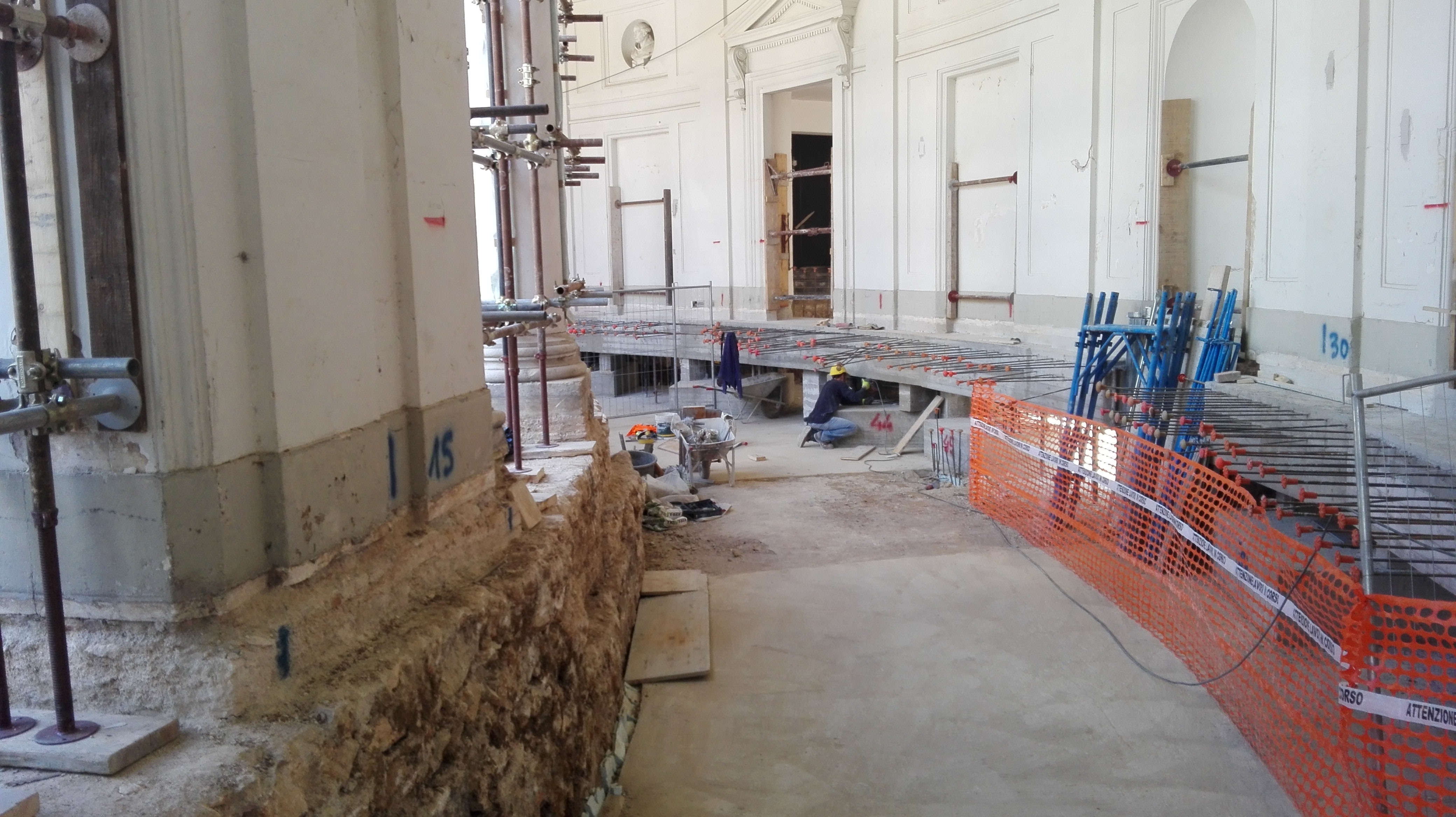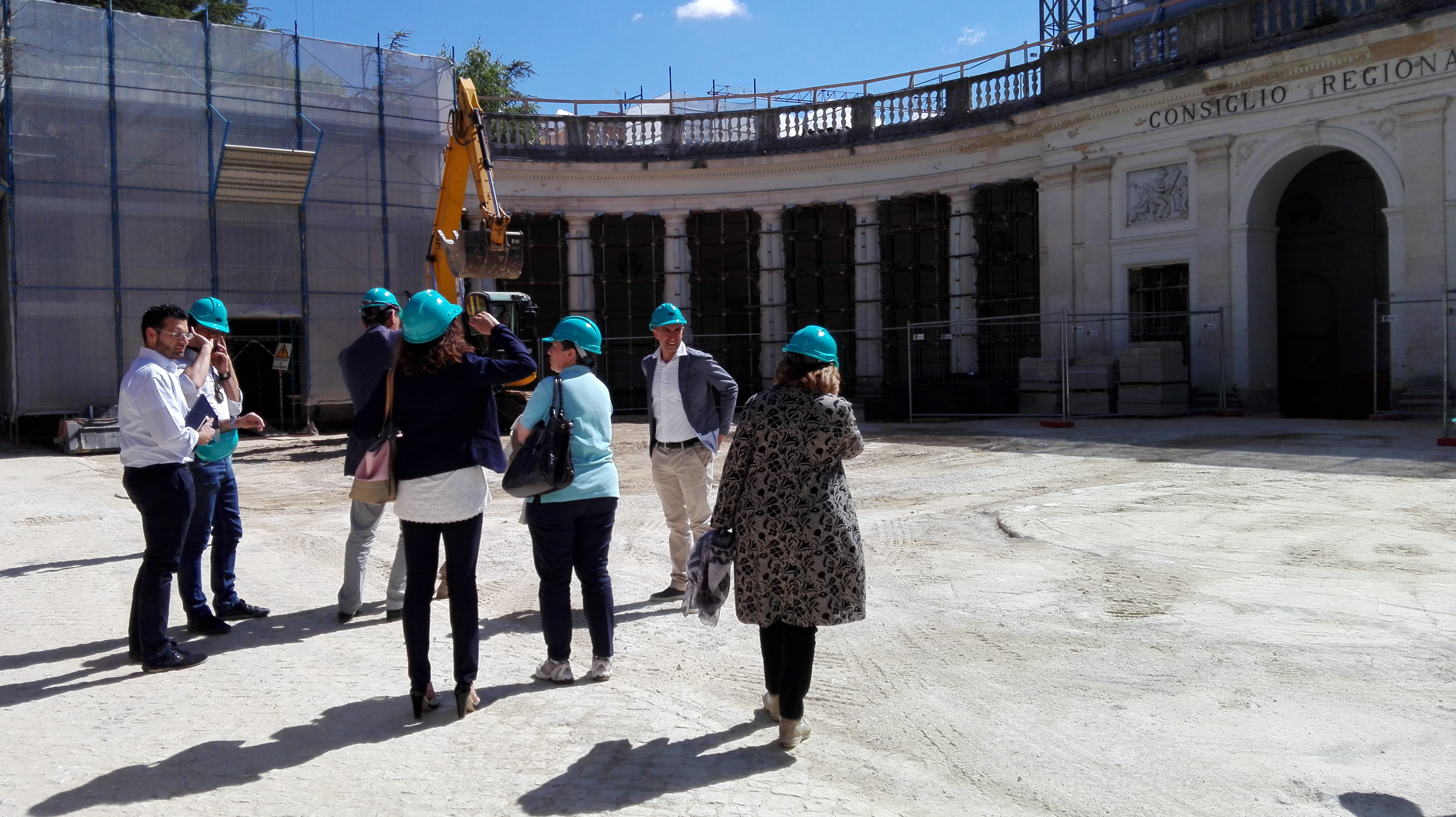 Il cantiere dell’Emiciclo è a un quinto del suo percorso di ricostruzione. Con meno di 9 milioni di euro previsti per i lavori è il primo cantiere di una struttura pubblica istituzionale avviato in centro storico e sarà la prima a essere restituita alla città tra un anno circa.