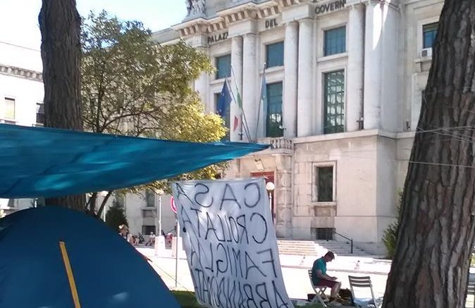 “Tutto inizia con un verbale dei Vigili del Fuoco del 2015 – spiega Alessandra – che certifica un cedimento fondale di casa nostra, perché c’è un canale di scolo delle acque piovane del Comune di Alanno che attraversa il terreno pur senza la nostra cessione di servitù. Noi abbiamo fatto parecchi esposti, con il canale già mal messo. Nonostante i Vigili del Fuoco abbiano invitato il Comune di Alanno a fare lavori per la messa in sicurezza della zona, l’ente ha girato a noi il verbale perché quei lavori li facessimo noi, lavori pubblici però, a quanto pare.” Così parlava Alessandra Marsilii quando fu costretta, nel 2017, a mettere una tenda in piazza Italia, davanti a Prefettura e Comune a Pescara, per cercare di attirare l’attenzione sul suo caso e su quello della sua famiglia: il marito, Francesco Roberto Cucinotta e i suoi tre figli, una ragazza e due ragazzi. E da lì una vicenda che si è complica ancorata ulteriormente per i Cucinotta quando, nell’ottobre del 2017, non si è riusciti a trovare una soluzione e la famiglia venne sgomberata dalla piazza.