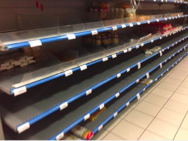 Le previsioni meteo indicano due – tre giorni di neve possibile anche sulla costa abruzzese, già da stanotte: ipermercati presi d’assalto, tra scaffali vuoti e lunghe file alle casse.