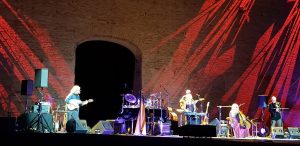 Sul palcoscenico dello Sferisterio, accanto alla cantautrice e polistrumentista Loreena McKennitt (voce, arpa, pianoforte e fisarmonica), c’erano Brian Hughes (chitarra, oud e bouzouki celtico), Caroline Lavelle (violoncello, flauti e voce), Hugh Marsh (violino), Dudley Philips (contrabasso) e Robert Brian (batteria) in una sintonia perfetta e impeccabile.