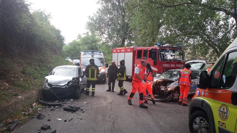 Incidente stradale tra due auto sulla Sp13 a Bellante: tre i feriti ricoverati in ospedale, tra cui una bimba, e strada chiusa al traffico.