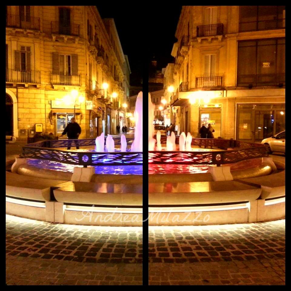 A Chieti, nel giorno del lutto e del dolore per gli attentati di Parigi, la fontana di piazza Valignani si illumina con i colori della bandiera della Francia (nella foto sopra di Andrea Milazzo). Un modo simbolico per stare vicino, seppure idealmente, ai cittadini parigini così profondamente colpiti dall’orrore degli attentati rivendicati dall’Isis.