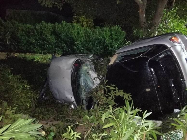 Alla guida della Mini Cooper, coinvolta nell’incidente, c’era un ragazzo 24ennne di Sant’Omero, che, per cause in corso di accertamento, è finito con l’auto fuori strada e ha abbattuto due pali dell’illuminazione pubblica e due ulivi, terminando la corsa contro un albero di ulivo più grande e restando in bilico sul cordolo di cemento a bordo strada.