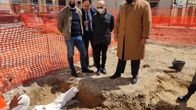 Reperti archeologici in piazza San Giustino. Il sindaco e gli assessori De Cesare e Rispoli: “Una scoperta grande per la città, piena fiducia nel lavoro di accertamento e studio della Soprintendenza”