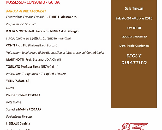 Cannabis light e Terapia del dolore, questo il titolo del convegno tenuto stamani a Pescara per contribuire a fare chiarezza e dare delle informazioni corrette sull’uso dei cannabinoidi per trattare alcune patologie.