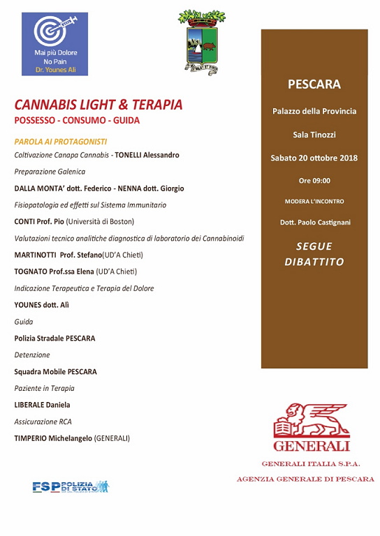 Cannabis light e Terapia del dolore, questo il titolo del convegno tenuto stamani a Pescara per contribuire a fare chiarezza e dare delle informazioni corrette sull’uso dei cannabinoidi per trattare alcune patologie.
