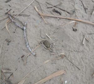 Invece sabato 10 aprile la triste “sorpresa”: durante il controllo abbiamo constatato che c’era un trattore al lavoro per livellare e “pulire” la spiaggia. Risultato: nido scomparso e area completamente alterata nonostante precise norme che tutelano le zone di nidificazione e i nidi di questa specie. Facciamo notare che un nido di Fratino dal punto di vista legale è allo stesso livello di tutela del nido di Aquila reale e, tra l’altro, ormai la specie ha numeri in termini di nidificazione quasi comparabili tanto è in declino!
