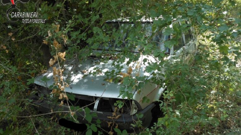 Ambiente, diciotto veicoli fuori uso abbandonati in aree rurali e boschive. Elevate sanzioni per oltre 27 mila euro. Denunciato il proprietario di un’ autovettura.
