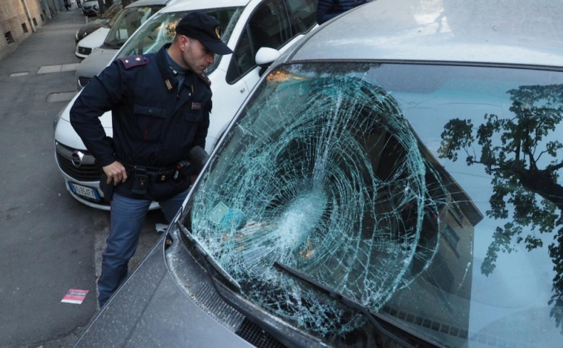 Si lancia dal secondo piano del suo appartamento, probabilmente per questioni sentimentali, ma finisce su un’automobile in sosta, che attutisce il colpo, e si salva.