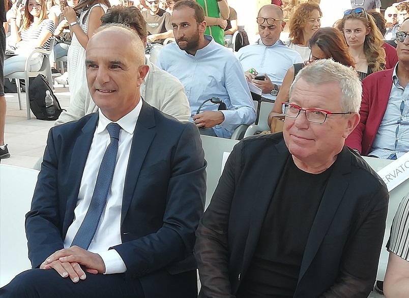 Il sindaco Carlo Masci e Daniel Libeskind all’Oscar Pomilio Blumm Forum. Il potere identitario e valore comunicativo della memoria collettiva: valore intangibile e dimensione fondamentale del vivere comune.