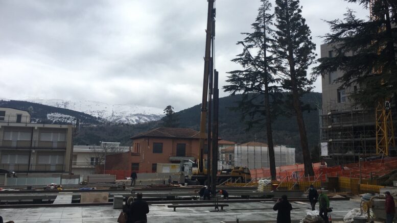 A 12 anni dal terremoto si vede il segno tangibile di quello che sarà il parco della Memoria a Piazzale Paoli. È stato montato questa mattina, infatti, l’obelisco al centro del parco. Ci si avvicina così alla data del 6 aprile quando i lavori, iniziati nel 2019, dovrebbero essere terminati.