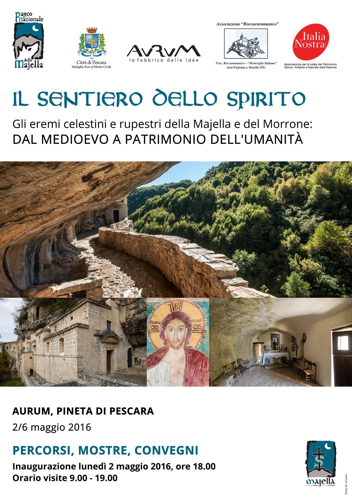 - Maria la Morrone, Santa Maria de Cripris, S. Onofrio di Serramonacesca, S. Liberatore a Majella, Madonna dell’Altare, S. Michele di Pescocostanzo, S. Michele di Pescocostanzo, S. Martino in Valle di Fara S. martino, S. Angelo di Lama dei Peligni ed altri. Centrale resta in questo percorso La Badia Morronese a Sulmona. Edoardo Micati nel 1990 in “Eremi e luoghi rupestri della Maiella e del Morrone” ha scritto che … “…fin dai tempi antichissimi culti e rituali di religiosità popolare, santuari rupestri, pievi, grotte animate da monaci itineranti, eremiti e fedeli hanno espresso ed esprimono il sacro legame dell’uomo con la natura ed hanno documentato e documentano che l’Abruzzo è terra di monachesimo, di eremi e di abbazie montane”. E Daniela Bianco nella sua pubblicazione “Sui passi di Celestino V”, ha scritto: “Qui pregò Celestino V insieme a tanti altri monaci che vissero, videro e percepirono il disegno del Creatore nella pace e nella maestosità della natura montana abruzzese. Qui, dove il vento sembra il respiro del mondo, anche noi uomini del duemila possiamo fare la pace con il creato (…) La Maiella, dunque, con il suo Parco è una preziosa risorsa ambientale, che custodisce valori umani, spirituali ed artistici di grande prestigio e sacralità, proprio per le reliquie di un mondo che non c’è più”. Ora è giunto il momento di valorizzare un patrimonio che appartiene a tutto l’Abruzzo: gli Eremi Celestini e Rupestri, di grande importanza, fascino e suggestione sia sotto l’aspetto religioso che storico-culturale ed ambientale. Si tratta di un progetto che deve coinvolgere tutte le realtà abruzzesi interessate ad uno sviluppo sostenibile della nostra regione e alla salvaguardia del patrimonio storico-culturale e identitario del nostro territorio. Per parlare di questa grande iniziativa dal 2 al 6 maggio 2016 presso l’Aurum di Pescara si terrà un grande evento dal titolo: “IL SENTIERO DELLO SPIRITO” Gli eremi celestini e rupestri della Majella e del Morrone: DAL MEDIOEVO A PATRIMONIO DELL’UMANITA’.