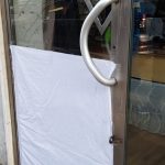- La vetrina della sartoria cinese, rotta da vandali ignoti per la psicosi da Coronavirus.
