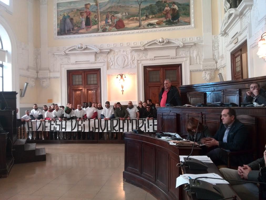 Chieti: irrompe in consiglio comunale la protesta dei lavoratori del mattatoio teatino, 35 dipendenti preoccupati per il loro futuro, dopo la scadenza del contratto di convenzione della società cooperativa dei macellatori teatini che da 19 anni ormai gestisce la struttura comunale all’ex foro Boario di Chieti Scalo.