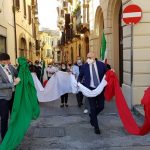 - L’arrivo dei manifetsanti in piazza San Giustino. A destra il sindaco di Chieti, Umberto Di Primio, porta il drappo della bandiera d’Italia.