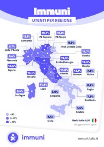 I dati regionali, aggiornati al 31 agosto del 2020 e diffusi nei giorni scorsi, mostrano una cartina geografica dello stivale, isole annesse, con le percentuali, regione per regione, degli utenti che hanno deciso di installare sul proprio cellulare la App Immuni.
