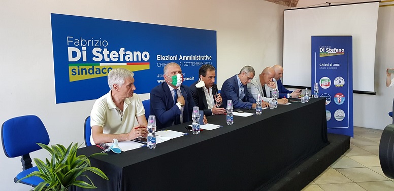 Lega, Fratelli d’Italia, Unione di centro, Giustizia sociale con Di Paolo e IdeAbruzzo stretti sulla convergenza alla candidatura di Di Stefano, presenziano uniti la conferenza stampa della coalizione che punta a governare il capoluogo teatino già dal 22 settembre.