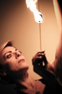 La scrittrice mangiafuoco Maura Chiulli, autrice del romanzo “Nel nostro fuoco”, edito da Hacca.