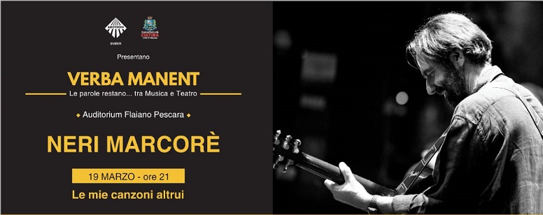 A Pescara il 19 marzo 2019 alle ore 21 Neri Marcoré porterà all’Auditorium Flaiano lo spettacolo “Le mie canzoni altrui”, nell’ambito del calendario di eventi “Verba manent” a cura dell’Accademia teatrale Arotron e dell’Assessorato alla cultura del Comune di Pescara.