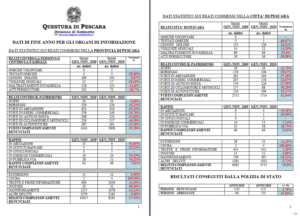 Il bilancio 2020 della Questura sui reati a Pescara e provincia registra un calo per quelli contro la persona e il patrimonio rispetto al 2019; aumentano omicidi, rapine agli uffici postali, truffe, estorsioni e usura.