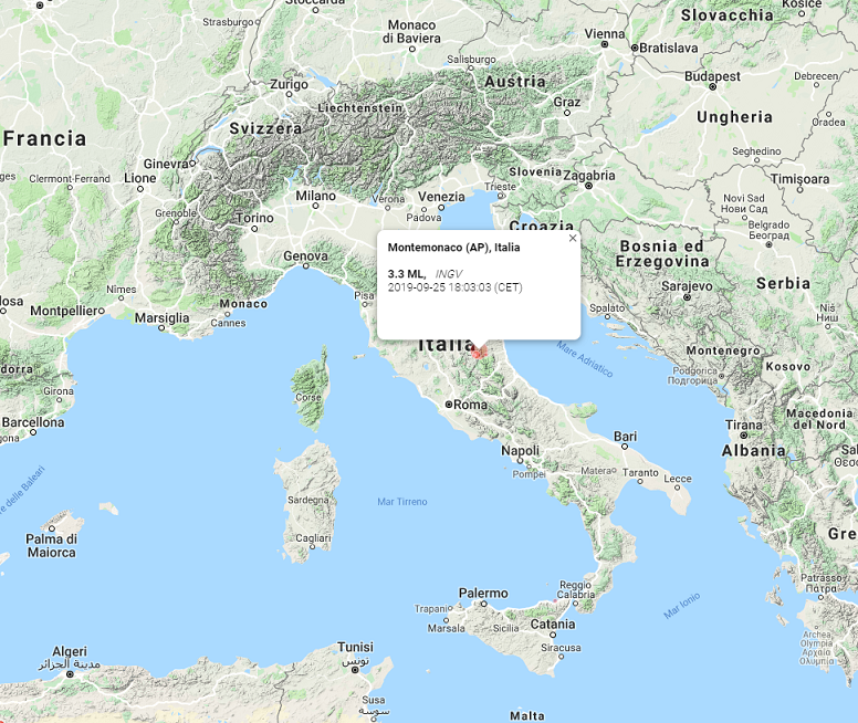 Una scossa di terremoto di magnitudo 3.3 è stata registrata alle 18.03 con epicentro a Montemonaco, in provincia di Ascoli Piceno.
