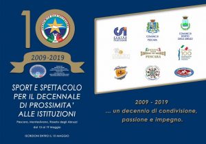 Intanto già da domani, mercoledì 15 maggio 2019, i festeggiamenti per il decennale della onlus prevederanno gare di Triathlon nei comuni di Pescara, Montesilvano e Roseto degli Abruzzi, come da programma allegato.