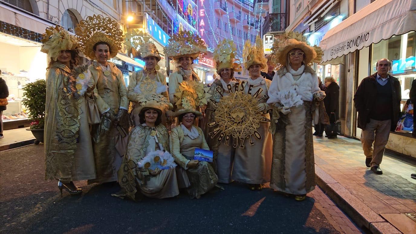 Bellezza, gusto artistico, stile, classe e simpatia, queste le caratteristiche che hanno contraddistinto la presenza a Sanremo dei componenti e delle componenti dell’Associazione pinetese Le Vie dell’Arte. In occasione della 69 esima edizione del Festival di Sanremo, come veri ambasciatori della regione Abruzzo, hanno attraversato le vie principali della cittadina ligure indossando maschere e costumi unici, realizzati a mano nelle forme del noto gioiello abruzzese de la Presentosa e delle ceramiche di Castelli. Abiti che non sono passati certo inosservati, le donne e gli uomini dell’associazione, con garbo e con la voglia di far conoscere l’Abruzzo agli artisti e ai tanti presenti, hanno spiegato cosa rappresentano i costumi e distribuito brochure con informazioni turistiche e culturali relative a Pineto e in generale all’Abruzzo. Un successo straordinario confermato dalle tante testate giornalistiche, in particolare le emittenti televisive locali e anche nazionali, che hanno scelto di intervistare i referenti del gruppo e quindi dare risalto all’iniziativa.