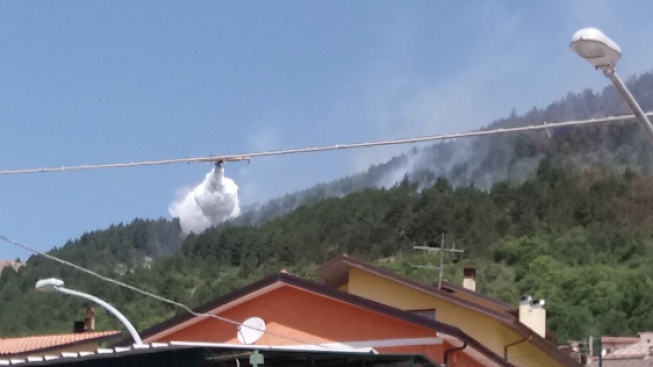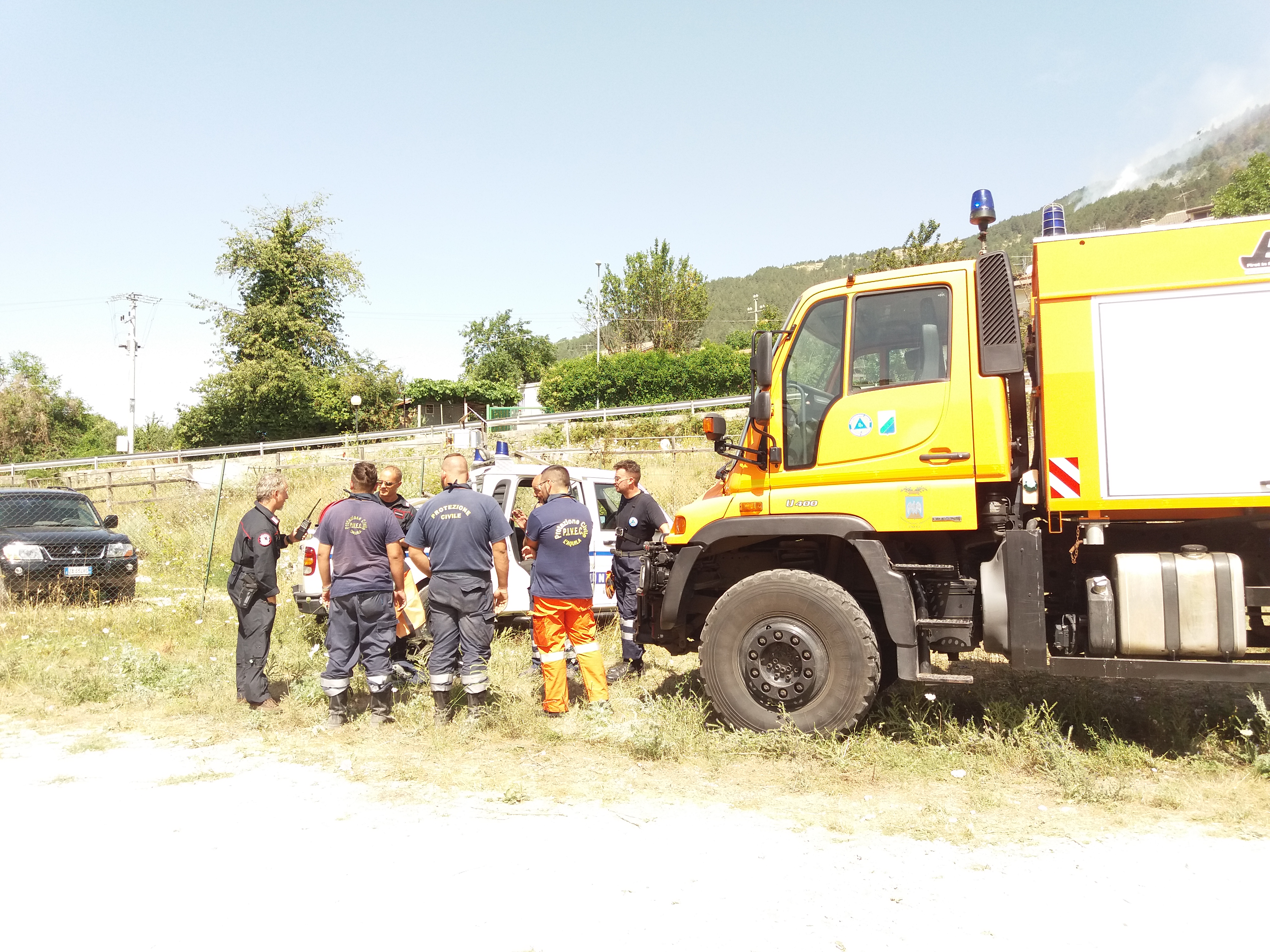 Fortunatamente il vento si è calmato e per i 5 mezzi aerei è più facile mirare con precisione ai focolai attivi. Soltanto nel pomeriggio a dare manforte ai mezzi aerei eseguono passaggi con sgancio di acqua ogni 8-10 minuti) interverranno anche uomini da terra, soltanto però se le operazioni di bonifica lo consentiranno essendo la zona impervia e difficile da raggiungere. I canadari si riforniscono al lago di Campotosto, mentre gli elicotteri tramite una cisterna posizionata in un campo base al campo sportivo presidiato dai volontari della protezione civile poco all’esterno del centro abitato. Si tratta di vasche di riempimento mentre altri mezzi ieri si erano serviti anche del piccolo lago sportivo di Tempera. La matrice dolosa dell’incendio sembra confermata. Il fronte dell’incendio si estende per circa 3 chilometri.